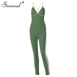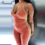 Simenual Ribbed Patchwork Casual Sporty Jumpsuits Women Sleeveless V Neck